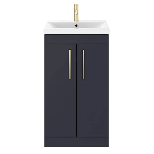 Arezzo 500 Matt Blue Floor Standing Vanity Unit with Ceramic Mid-Edged Basin + Brushed Brass Handles