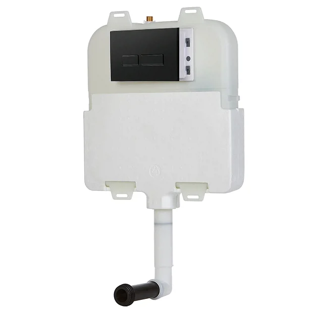 The sleek and streamlined Arezzo compact water saving pneumatic dual flush concealed cistern with square button matt black flush plate, ideal for bathroom furniture and in wall installations. It has an insulated durable design, reducing the need for maintenance and is economical with water, providing a 3 or 6 Litre flush. It comes with a cable operated flush plate for simple installation. For use with back to wall pans.