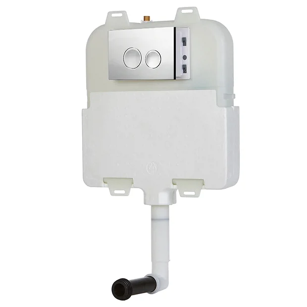 The sleek and streamlined Arezzo compact water saving pneumatic dual flush concealed cistern with polished chrome flush plate, ideal for bathroom furniture and in wall installations. It has an insulated durable design, reducing the need for maintenance and is economical with water, providing a 3 or 6 Litre flush. It comes with a cable operated flush plate for simple installation. For use with back to wall pans.
