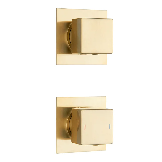 The Arezzo Brushed Brass Concealed Individual Diverter and Thermostatic Control Shower Valve Pack features a striking modern square design. This shower valve pack is perfect for installing in a concealed arrangement, linked to two outlets.