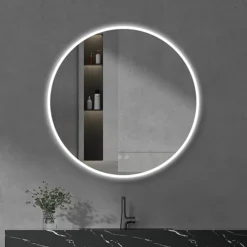 Arezzo 800mm Large Round LED Illuminated Anti-Fog Mirror + Bluetooth