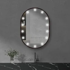 Arezzo Bulb 500 X 700mm Capsule Matt Black LED Illuminated Mirror With Motion Sensor + Anti-Fog