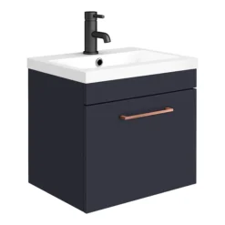 Arezzo 500 Matt Blue Wall Hung 1-Drawer Vanity Unit With Rose Gold Handle