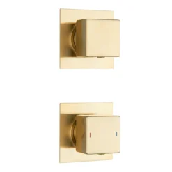 Arezzo Square Brushed Brass Concealed Individual Diverter + Thermostatic Control Shower Valve