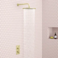 Arezzo Brushed Brass Round Shower System (Fixed Head, Handset + Integrated Parking Bracket)